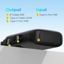This power bank is equipped with three charging ports, including a Type-C input/output and a dedicated port for iPhone, allowing you to charge multiple devices simultaneously. The fast-charging capability, with 22.5W power output, ensures that your devices are powered up in no time, making it perfect for those on the go. The intelligent digital display keeps you informed of the charging status, so you always know when your devices are ready.