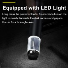 • Integrated LED light to illuminate dark corners and under-seat areas.