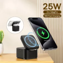 Experience a new level of convenience with the Baseus MagPro 2-in-1 Magnetic Wireless Charger Stand. This sleek and versatile charging station offers a seamless solution for powering up your iPhone and AirPods simultaneously.
