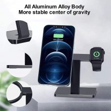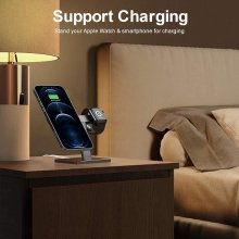 Designed specifically for Apple users, this charger stand offers a specialized solution that keeps both your iPhone 12 and Apple Watch fully charged and ready to go. The robust aluminum alloy frame supports your devices securely, while the compact design does not compromise on space. Magnetic technology not only aligns the charger accurately every time but also protects it from falling off. Ideal for multitasking, this stand allows you to use your phone hands-free while charging, perfect for video calls, watching tutorials, or browsing recipes.