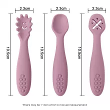 I've been on the hunt for the perfect feeding utensils for my baby, and I'm so to have found this set The silicone material is soft yet sturdy, which makes it safe for my little one's gums. Not only that but they're a breeze to clean too - just pop them in the dishwasher and they come out good as new. They also have a nice grip that fits perfectly into tiny hands, making self-feeding much easier. My child has taken to these spoons and forks, making meal times less stressful and more fun.