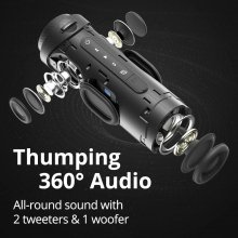 • Immersive 360° Audio: Dual tweeters and a robust woofer create an all-encompassing sound experience.