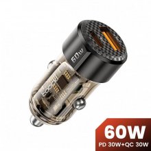 This 60W Dual-Port Car Charger stands out with its combination of speed, versatility, and durability. Whether you’re commuting to work, heading out on a road trip, or just running errands, this charger ensures your devices are powered up quickly and efficiently. The new transparent design adds a touch of modern elegance to your car’s interior, making it a perfect match for any vehicle.