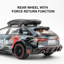 Unleash the excitement of the Audi RS6 with this 1/24 scale modified car model. Perfectly crafted to replicate the details of the real car, this diecast model is a must-have for car enthusiasts and young racers alike. With its pull-back action, light, and sound features, this model car brings the thrill of the racetrack to your home.