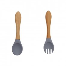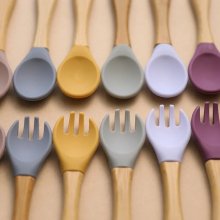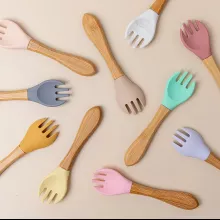 Baby Bamboo Fork Silicone Wooden Feeding Set