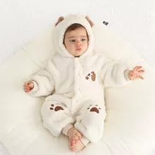 The Baby Bear Fleece Hooded Snowsuit is crafted from luxurious coral fleece on the outside, providing a soft and cozy feel that your baby will love. The inner lining is made of breathable polyester, which is gentle on your baby’s delicate skin. This combination ensures that your baby stays warm without overheating, making it perfect for fall, winter, and early spring.