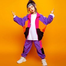 Crafted from high-quality polyester, this set is durable, lightweight, and ideal for year-round wear. The set includes a contrast patchwork jacket with a turn-down collar and full-length sleeves, and a pair of matching joggers that combine fashion and function. The jacket features a convenient zipper closure for easy wear, while the joggers offer a comfortable fit with just the right amount of stretch. Available in vibrant purple and blue, this outfit will make your child the trendsetter of their group.