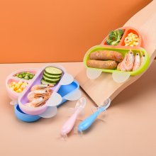 Our tableware set is designed to make feeding time a breeze. The car-shaped plate is divided into multiple sections, allowing you to serve different foods without them mixing together – perfect for picky eaters! The soft silicone material is ideal for tiny hands learning to self-feed, and the matching spoon set is ergonomically designed for easy grip, making it simple for your little one to scoop and eat.