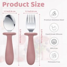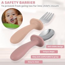 Our cutlery set is crafted with the highest safety standards in mind. Made from durable stainless steel and soft silicone, each piece is robust yet gentle for little mouths. The utensils are latex-free, BPA-free, nitrosamine-free, phthalate-free, and PVC-free, ensuring a safe eating experience for your child at every meal.