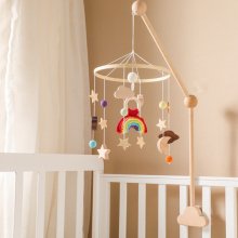Transform your baby’s crib into a magical haven with our Wooden Baby Mobile Crib Hanging Toys. Featuring charming designs of rainbows, suns, stars, and moons, these adorable rattles and bed bells will captivate your little one’s imagination. Made from high-quality wood and cotton, these educational Montessori toys are perfect for newborns and make an excellent gift for new parents. Let your baby drift into dreamland with these enchanting crib decorations.