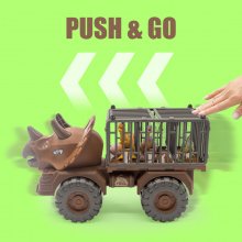- Includes a large transport truck, Tyrannosaurus Rex, an egg, and three little dinosaurs