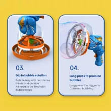 What sets our bubble gun apart from the rest? Its unique dinosaur design and easy-to-use functionality make it a hit among kids. The bright colors and playful shape instantly grab attention, while the smooth edges ensure it’s safe for little hands. Plus, it’s constructed from high-quality ABS material, making it durable for countless hours of play.
