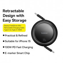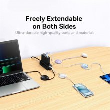 The basic features of our retractable cable include an astounding 100W fast charging capability and a 480Mbps transmission rate. It’s best utilized when you need a quick power boost or data transfer for your MacBook, iPad, iPhone 15 series, and other Type-C devices. What makes this product special is its both-way retractable mechanism that extends fully, allowing you to maintain an organized charging environment effortlessly. With four length presets and durability tested for over 50,000 pulling cycles, it combines convenience with reliability.