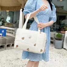 Large Portable Maternity Diaper Bag with Embroidery Bear Design