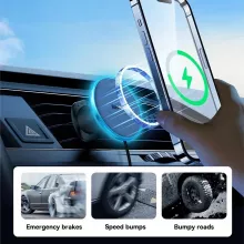Experience the ultimate convenience with our Magnetic Wireless Car Charger and Phone Holder, designed to keep your iPhone charged and accessible no matter where the road takes you. This innovative device combines a powerful wireless charger with a robust car mount, ensuring your smartphone stays secure and fully powered during even the bumpiest rides.