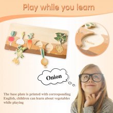 My grandsonores his new toy. He's learning about different vegetables while developing fine motor skills – genius idea!