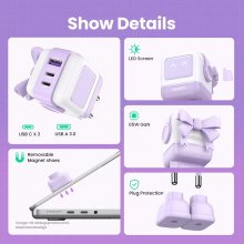 - Multiple Output Ports: Equipped with 1 USB-C port and 2 USB-C ports, providing versatility for simultaneous charging.