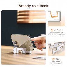 Your device deserves the best, and this phone stand delivers. The edges of the stand are wrapped in soft TPU, providing a better grip and extra protection against scratches and wear. The thoughtful design ensures that your phone is supported securely while keeping it in pristine condition. Whether you’re using it at your desk, in the kitchen, or on a plane, this stand offers peace of mind along with practicality.