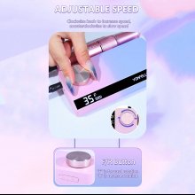 What sets our manicure machine apart is its blend of power, precision, and portability. Ideal for both beginners and seasoned professionals, it’s designed to offer an effortless nail care experience. Its unique pause mode allows for meticulous detail work, while the memory function provides convenience and efficiency. The ergonomic design ensures comfort during prolonged use, making it perfect for extensive nail care sessions.