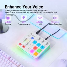 Perfect for game voice chats, live streams, and podcasting, this audio mixer helps you take control of your voice, style, and presence. With intuitive buttons, custom sound pads, and real-time voice effects, it’s your all-in-one audio interface that’s as fun to use as it is functional.