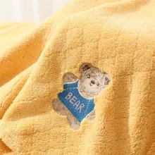 Soft Coral Fleece Baby Towel with Embroidered Cartoon Patterns