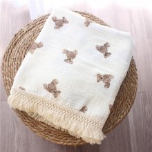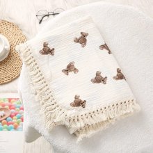 Wrap your baby in the soothing embrace of our Soft Cotton Muslin Swaddle Blanket, expertly designed to offer supreme comfort in any season. Crafted from 100% pure cotton, this blanket is gentle on your baby’s sensitive skin, providing a safe, cozy space for sleep or play. The charming bear pattern and elegant tassels add a touch of whimsy and style, making it a perfect addition to your nursery.
