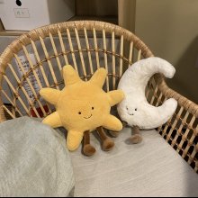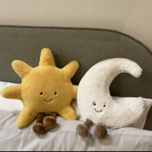 This charming set features a smiley-faced white moon and a cheerful yellow sun, bringing a delightful touch of whimsy to any space. Perfect for kids’ bedroom decor or as a cozy sofa throw pillow, these plush toys are sure to brighten up any room and bring endless smiles.