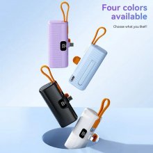 Ultra-Compact 10000mAh Power Bank with Built-In Cables and Digital Display