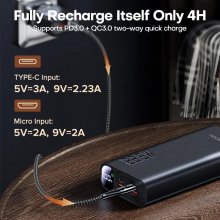 - Two-Way Fast Charging: Supports both PD 3.0 and QC 3.0, allowing for fast recharging of the power bank itself and your devices.