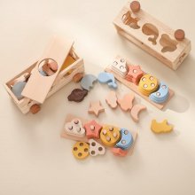 This versatile educational toy combines engaging play with essential learning experiences for young minds. Designed to foster cognitive development, hand-eye coordination, and spatial reasoning, this toy set is perfect for children aged 3 to 12 years. The set includes a charming wooden cart with silicone animal shapes and colorful blocks, making it both an interactive game and a handy storage solution.